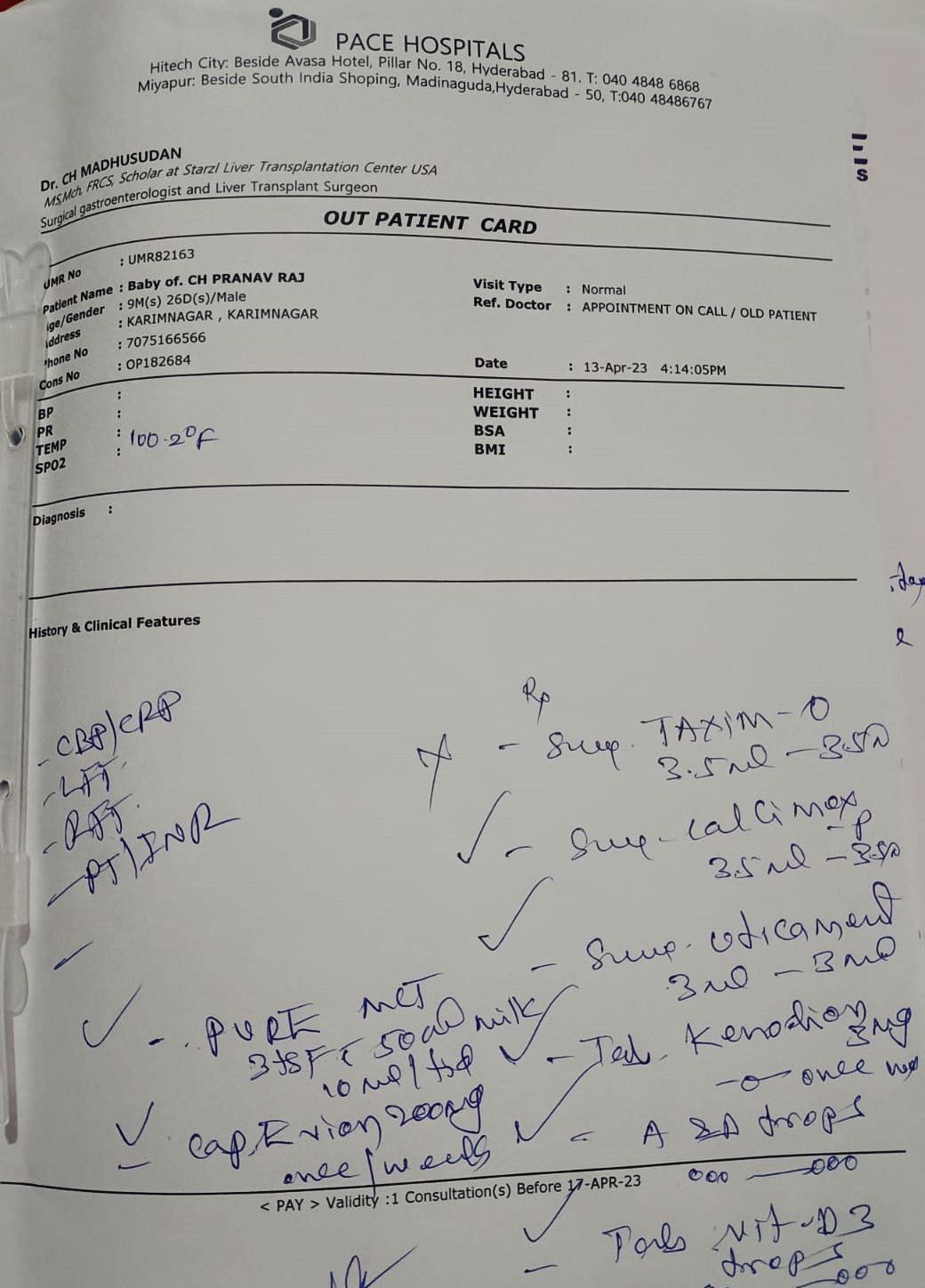 Pranav is one year old baby and single child of his parents, unfortunately he got affected with congenital liver disease after birth, already Kasai procedure has been done for biliary obstruction, which got unsuccessful, leaving Pranav health in critical condition and his parents in financial crisis.